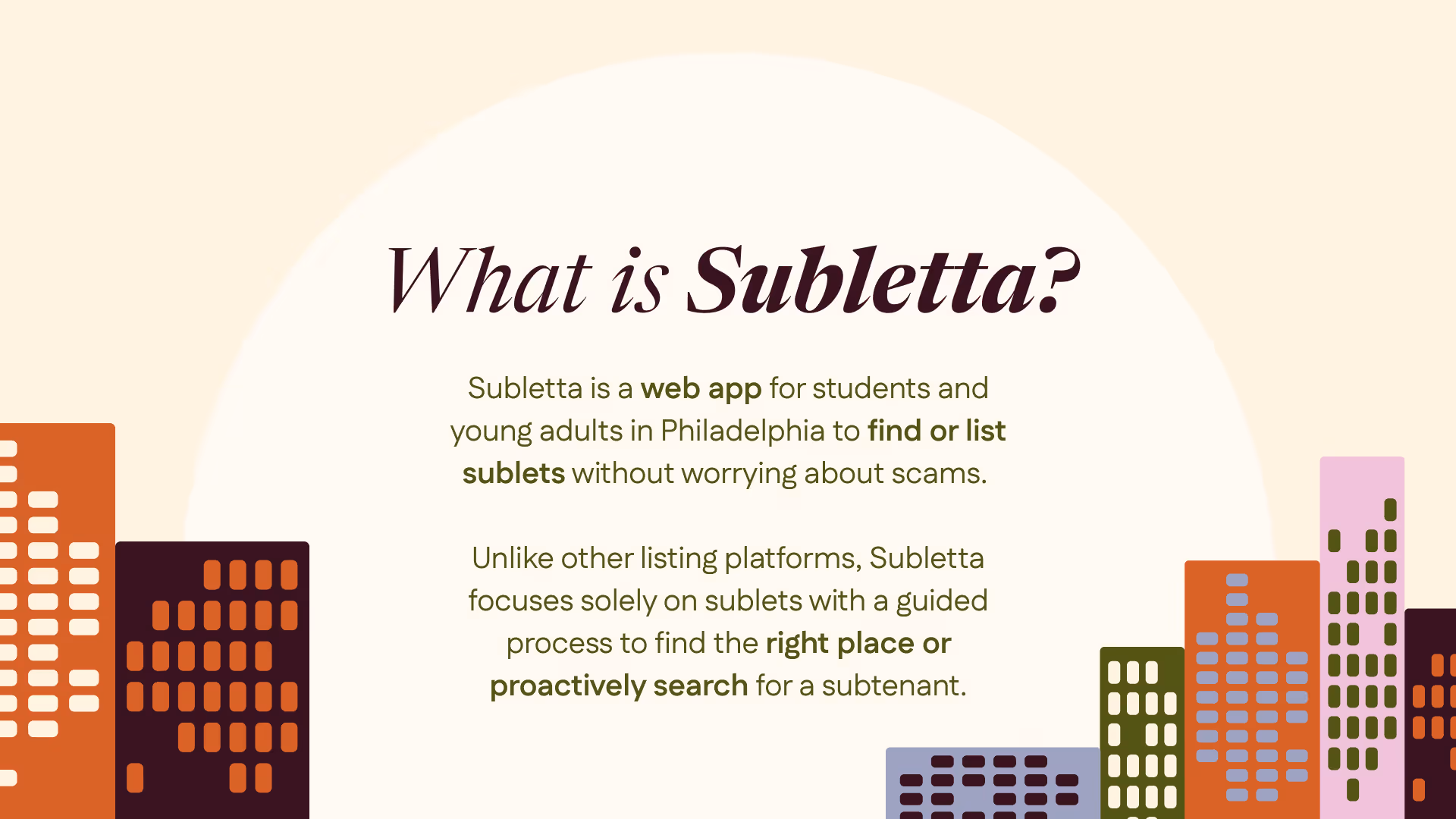 This became one of our guiding goals for Subletta: to replicate that positive experience digitally.