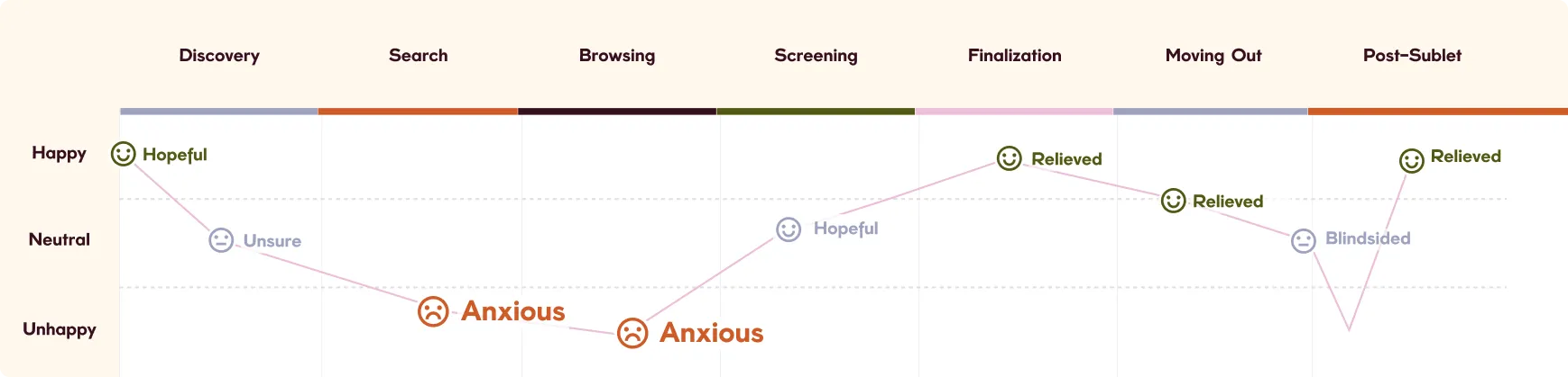 Gathered qualitative insights through surveys, interviews, and journey mapping to identify gaps in the subletting process